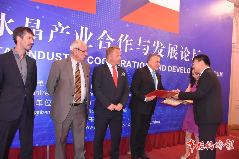 当天推介会上,东海水晶产业发展有限公司与舍谱琴科大师工作室项目、凯撒水晶、捷克石榴石,东海高新区与捷克皮尔森啤酒花种植加工项目签约。