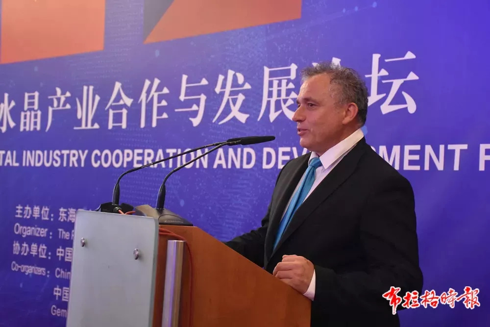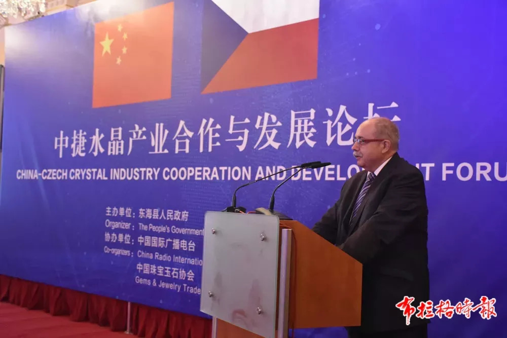 中国驻捷克大使馆临时代办陈建军在致辞中简要回顾了中捷关系发展史,高度评价了中捷合作成果,希望世界水晶之都—东海继续和捷克在水晶特色领域结出更多合作果实,并在其他领域有新的合作成果。