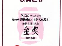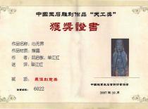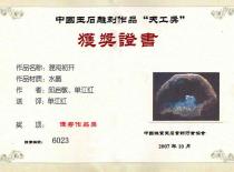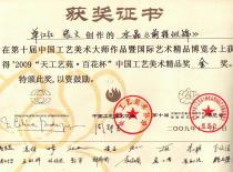 主要代表作品及获奖情况: 《心无界》荣获中国玉石雕刻作品“天工奖”最佳创意奖 《混沌初开》荣获中国玉石雕刻作品“天工奖”优秀作品奖 《前程似锦》获得天工艺苑·百花杯中国工艺美术精品奖金奖 《梦见敦煌》获得连云港“玉兰花”首届工艺美术精品大奖赛奖金奖 《灵化》荣获中国(苏州)“子冈杯”玉石雕精品博览会金奖 《墨竹》荣获中国(苏州)“子冈杯”玉石雕精品博览会最佳创意奖 《春涧云归》荣获江苏省工艺美术精品大奖赛金奖《称心岁月》荣获中国(苏州)“子冈杯”玉石雕精品博览会金奖