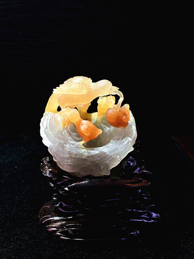 2008年4月 ,水晶雕刻《一鸣惊人》获2008“百花玉缘杯”中国玉石雕精品奖银奖。(扬州)