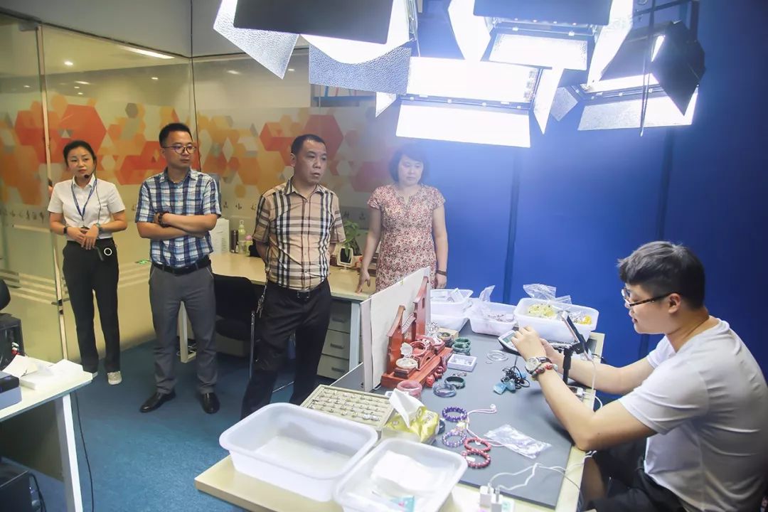 考察团一行首先来到小镇客厅,听取东海水晶产业发展历史,来到小镇沙盘前了解水晶小镇未来建设规划等相关情况,观看小镇宣传片,了解小镇发展前景。随后考察团来到电子商务示范区,仔细观看水晶电商大数据,咨询电商发展情况。在网红直播间,观看网红现场直播,与网红直播负责人深入交流。