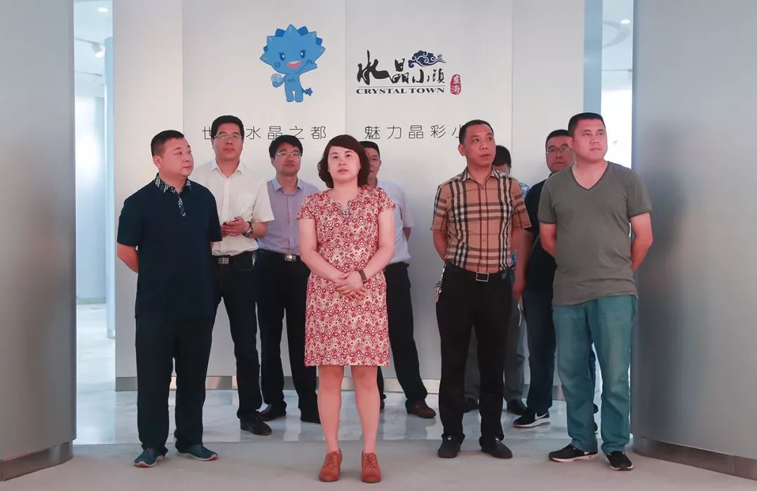 今日上午,为学习借鉴特色小镇建设的先进经验,浙江省云和县委常委、常务副县长饶钦英率团考察东海水晶小镇,东海县人大副主任张继生、县商务新区党工委书记刘志勇、水晶产业公司董事长李明、党委委员赵淳陪同考察。