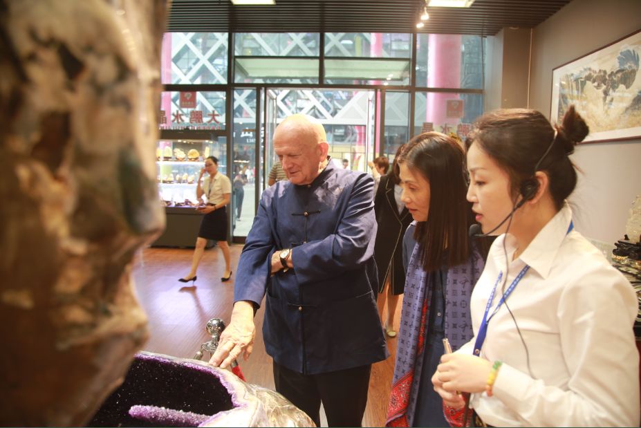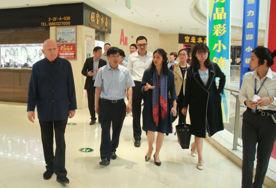 李瑞智一行先后来到小镇客厅、大鹏水晶、二号馆二楼及三楼柜台区、电商双创基地、大师工作室、捷克水晶展厅等,详细听取小镇建设、水晶产业发展情况。