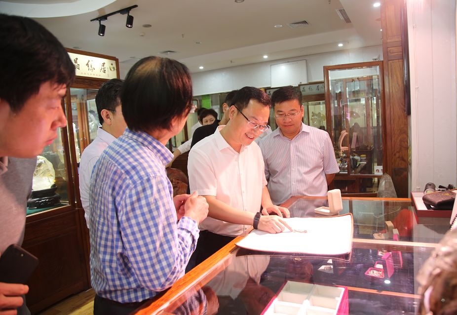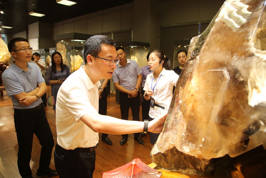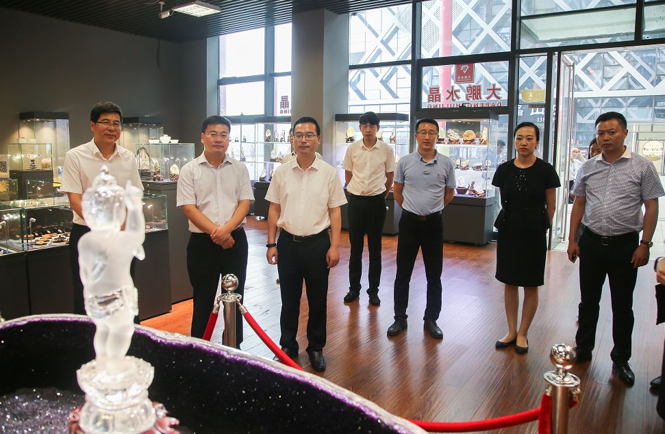 刘部长一行先后参观了小镇客厅、至善坊/大鹏水晶,听取了水晶小镇从起步建设到拓展规划等相关情况的介绍,并详细了解水晶小镇产业格局、政策服务、商户经营等方面的情况。水晶小镇先导区主要由中国东海水晶城和中国东海水晶博物馆构成,主要承载水晶交易市场、水晶文化展示两大功能。其中,中国东海水晶城内将打造水晶小镇客厅、电商双创基地、新商业综合体作为水晶交易市场的配套服务,提升水晶交易市场的整体服务功能。
