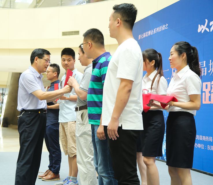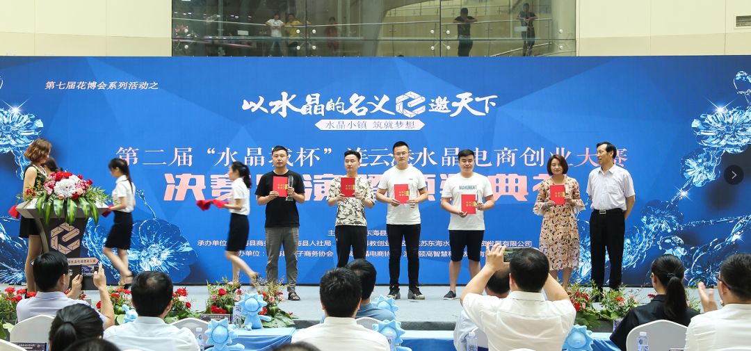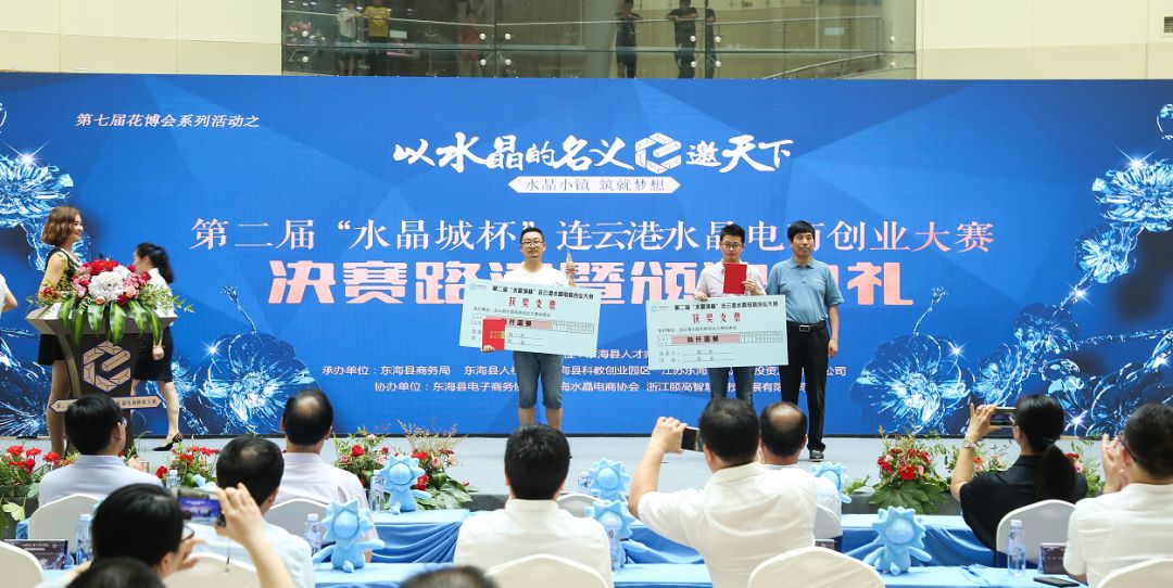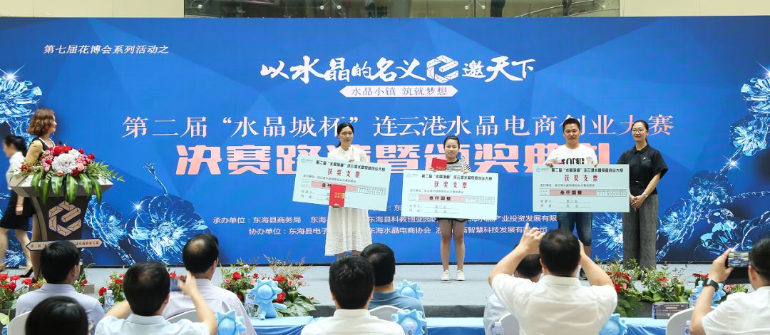 6月26日上午,第七届花博会系列活动之一的第二届“水晶城杯”连云港电商创业大赛颁奖典礼在中国东海水晶城一号馆一楼中庭圆满结束。东海县政协主席何东明、东海县人大党组副书记、人大常委会副主任张继生、东海县政府副县长王芳、东海县政府党组成员张正干、东海县人社局局长孔庆亚、东海县委宣传部副部长、县社科联主席杨正军、东海县委“两新”工委书记王克义、江苏东海水晶产业投资发展有限公司董事长李明、总经理陈伟、东海县科技局副局长、科教创业园区副主任何林、东海县商务局副局长刘燕等出席此次颁奖典礼。
