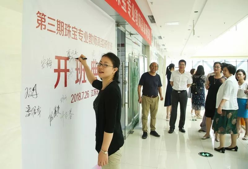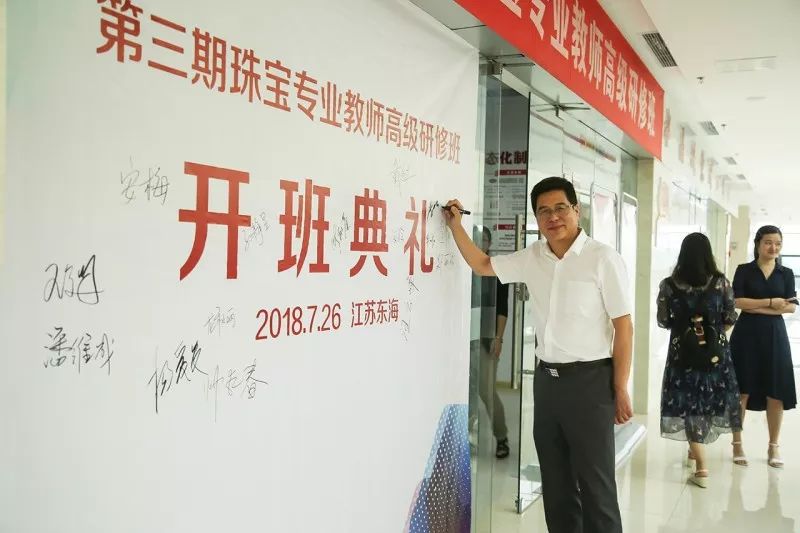 开班典礼由中宝协学术教育专业委员会秘书长张丽葵主持,江苏省东海县人民政府副县长王芳、江苏东海水晶产业投资发展有限公司董事长李明发表讲话。