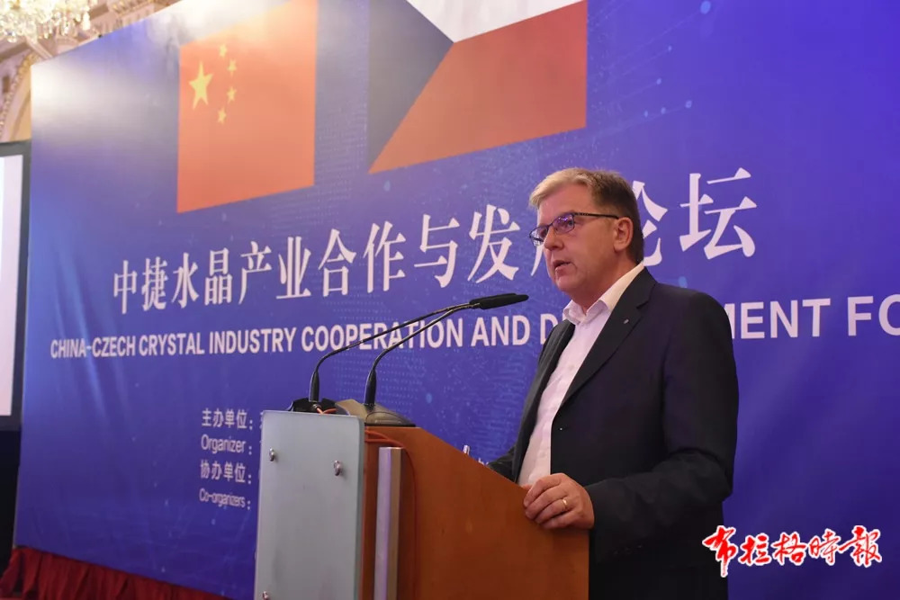中国际台欧洲站站长高世军在论坛主旨发言中提到媒体是中捷水晶产业合作与发展的见证者,这次水晶产业合作与发展论坛在布拉格举办是中捷友好关系发展的标志和缩影,捷克在“一带一路”、中国与欧洲“16+1”中成为中国的重要合作伙伴,这为中捷水晶产业深化合作奠定了坚实的基础,创造了良好的氛围。作为这次论坛的承办方,高世军说,中国国际广播电台是中捷水晶产业的见证者。他强调,捷克水晶和中国东海水晶享誉世界,双方在水晶产业的深化合作,即使优势互补,又是强强联合,国际广播电台将继续为中捷交流合作增光添彩。