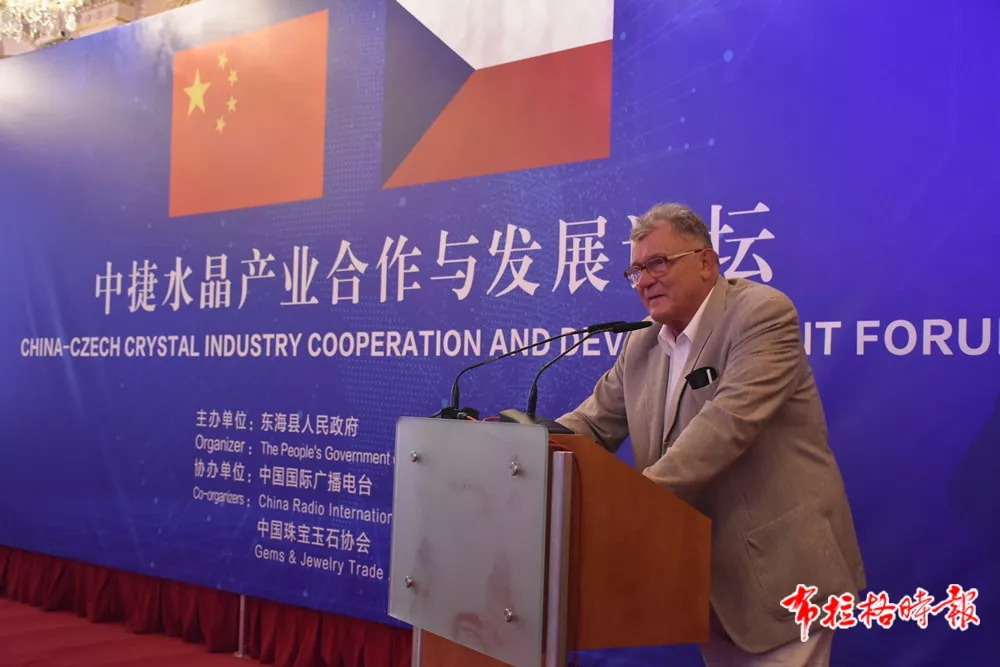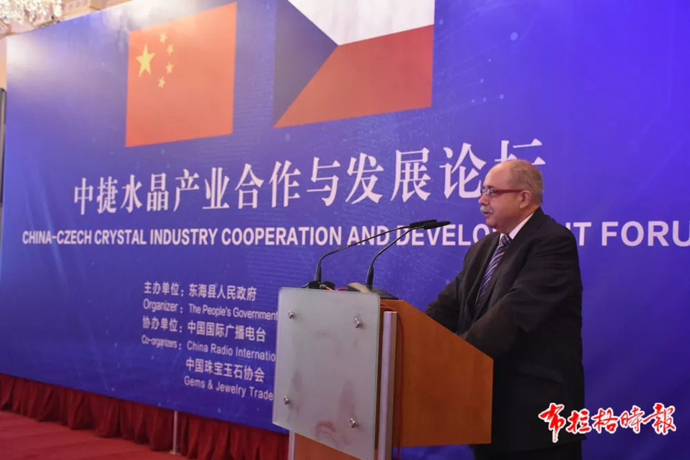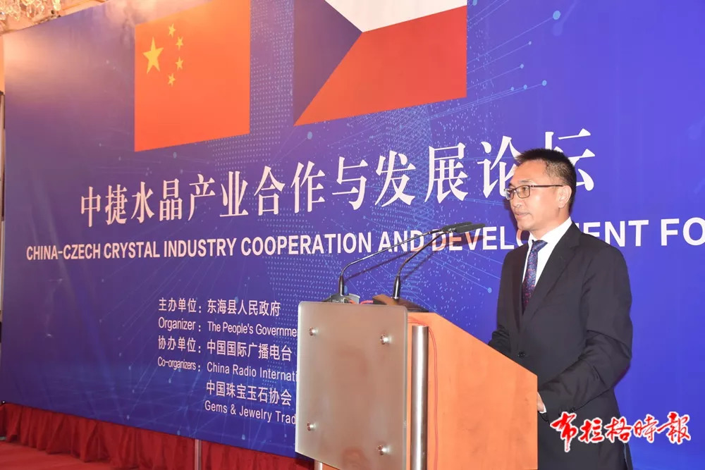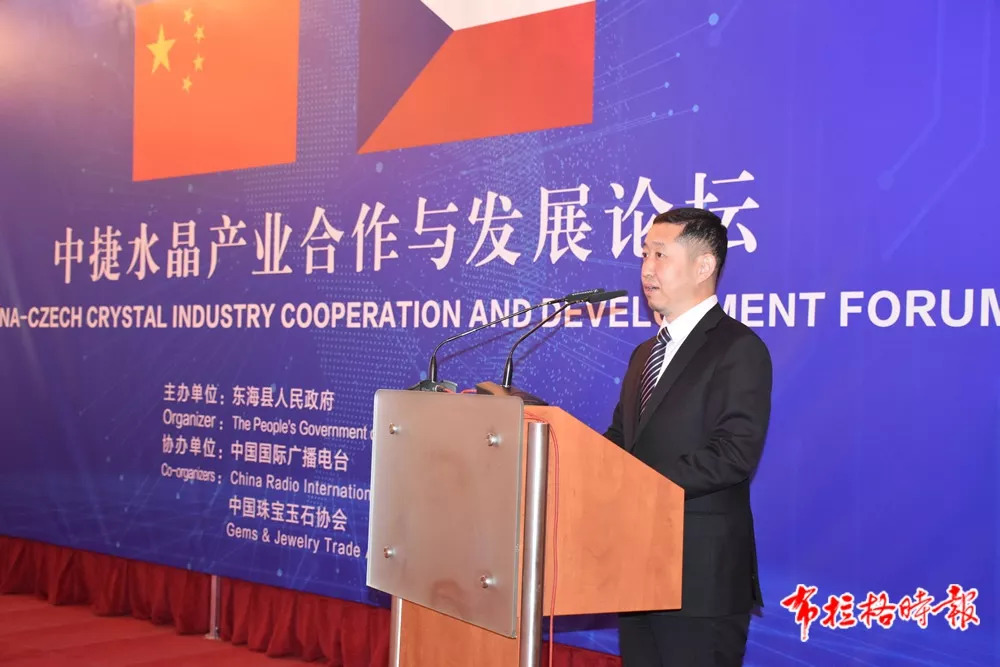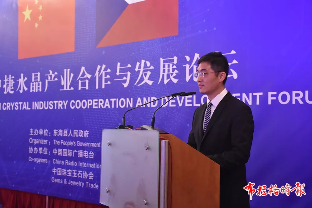 中国驻捷克大使馆临时代办陈建军在致辞中简要回顾了中捷关系发展史,高度评价了中捷合作成果,希望世界水晶之都—东海继续和捷克在水晶特色领域结出更多合作果实,并在其他领域有新的合作成果。