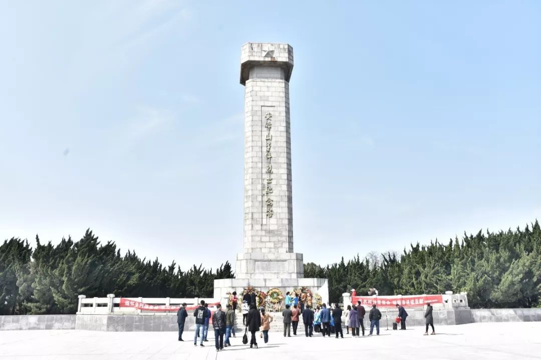 大家拾级而上,首先一同来到安峰山事件烈士纪念塔前,抬头仰望烈士浮雕,革命先烈们的精神及光辉形象再一次深深地感染了每一位党员同志。现场气氛庄严肃穆,随后举行了唱国歌、三鞠躬仪式、敬献花篮、重温入党誓词、瞻仰纪念塔。