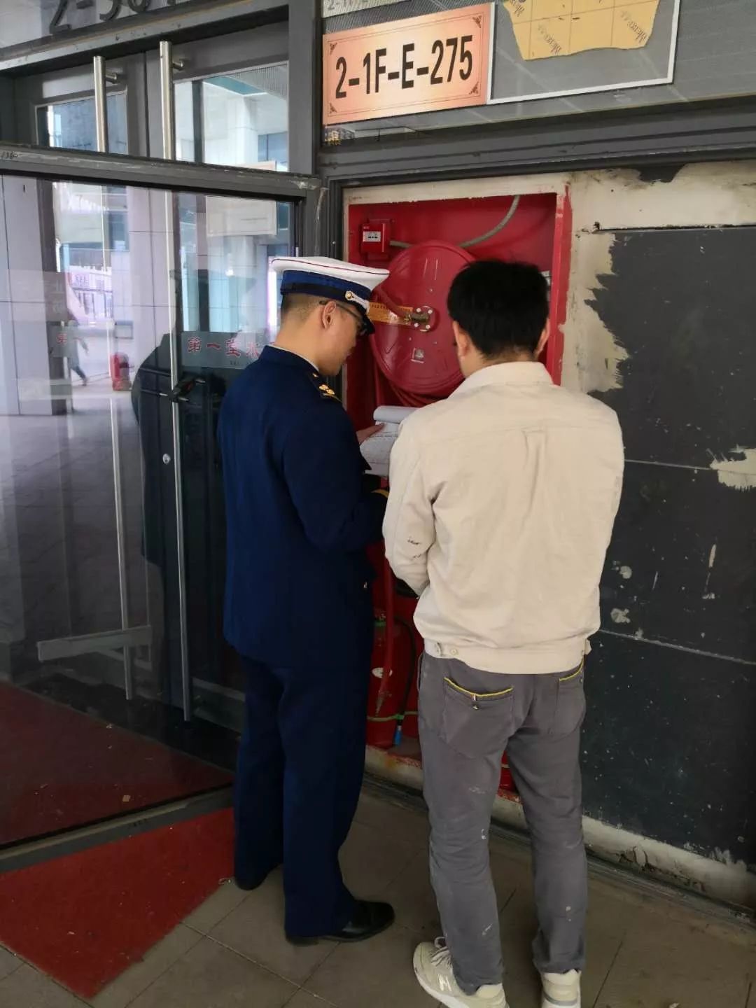相队长一行先后仔细查看了水晶城消防栓、消防控制室、消防通道、安全出口、逃生标志等消防设施。详细询问水晶城相关人员对灭火器使用、应急突发事件处理预案及消防安全常识等。检查了水晶城各项消防安全管理制度的制定、落实情况以及消防培训、应急演练开展情况。