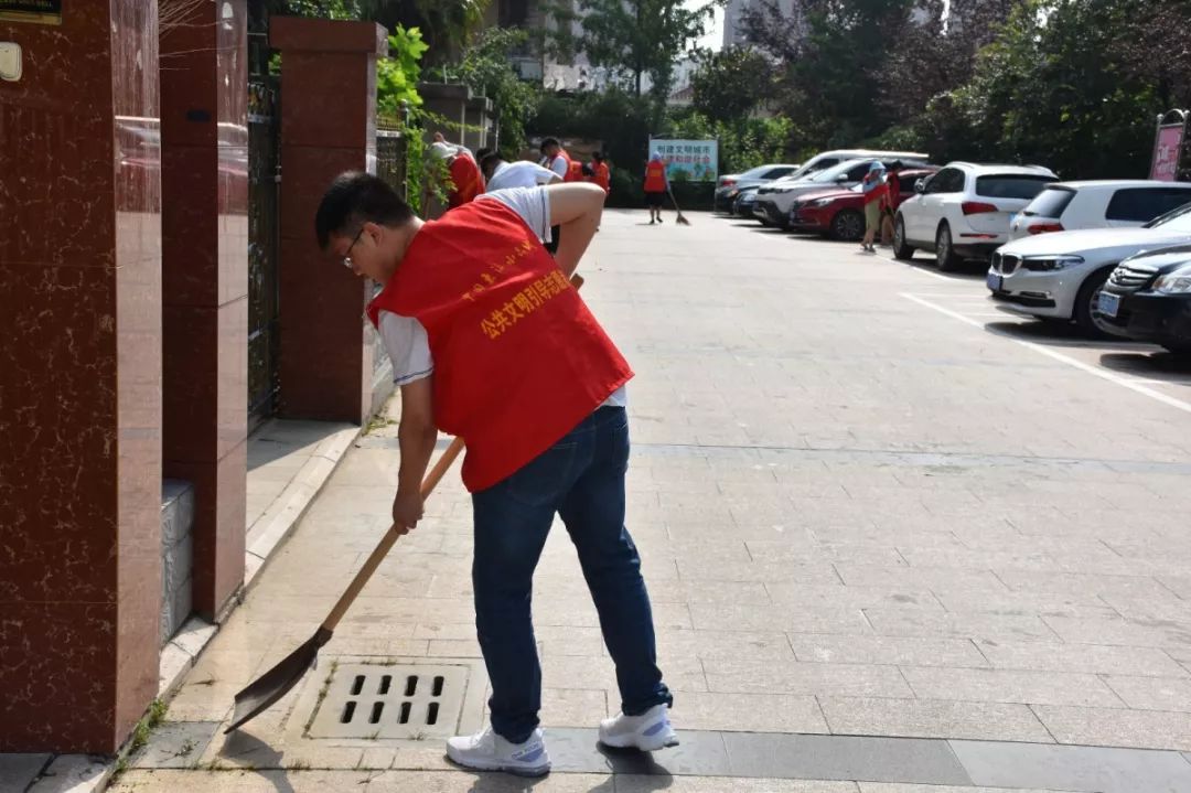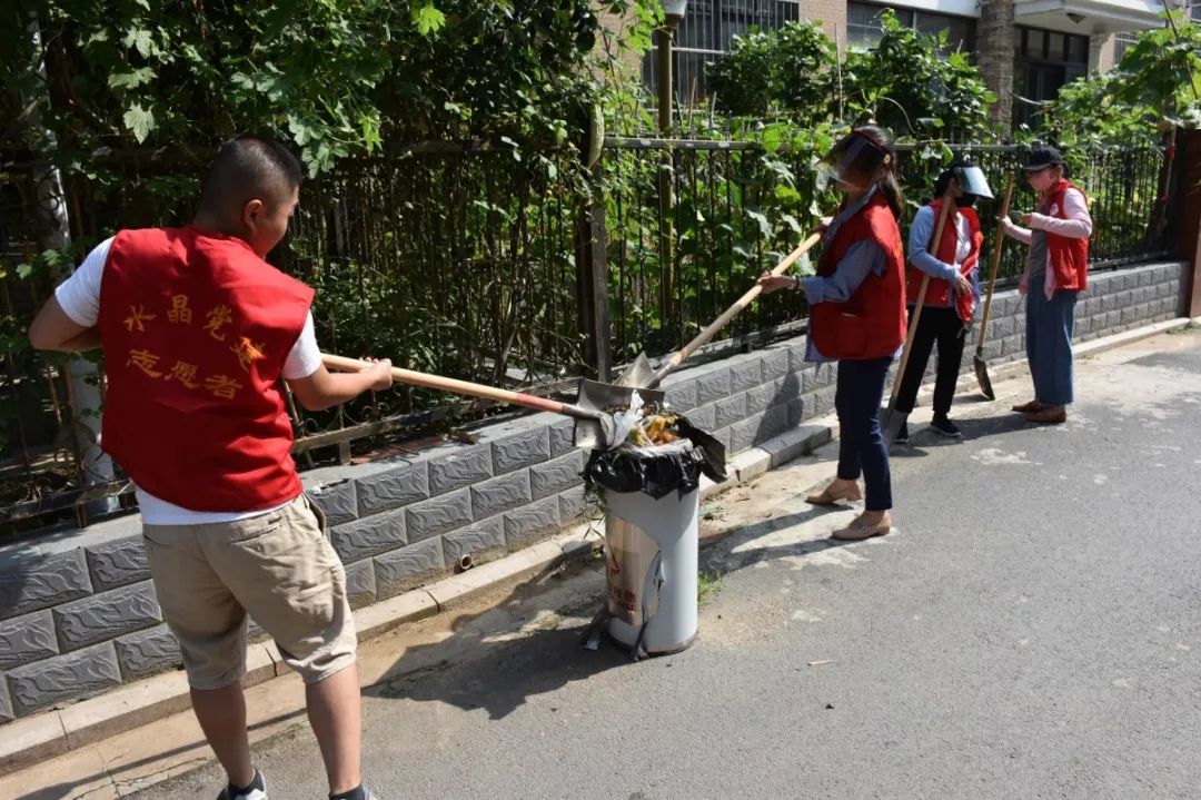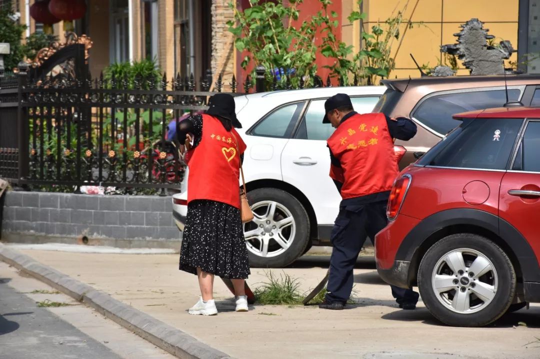 上午8时30分,志愿者们早早来到小区,身着红马甲、人手一把打扫工具,从西门开始,三五一组。炎热天气,大家不怕苦、不怕累,铲除小广告,清除地面垃圾、杂草,统一清运。每到一处、整洁一处、靓丽一处,切实改善了小区脏、乱、差的情况。
