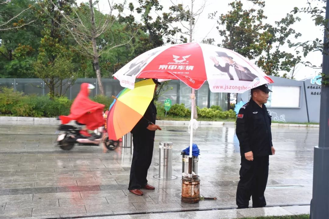 由于水晶城商户众多,下班高峰期道路拥堵,且适逢暴雨天气,为确保畅通无阻。水晶城安保人员及时到位,当起了“路面交警”,指挥车辆、有序进出,并做好耐心解释工作,提醒商家上下班减速慢行。一个个身影成为水晶城最暖心的风景。