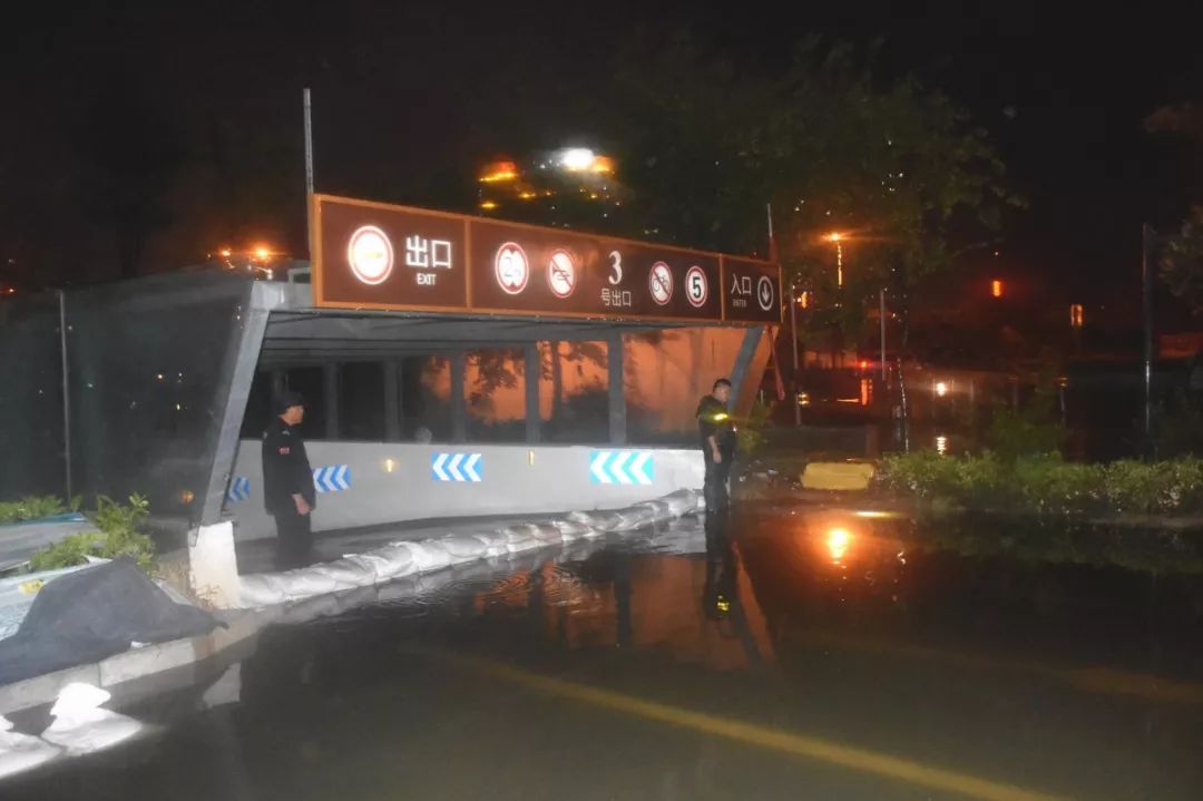为做好夜间防汛工作,水晶产业公司在每个道闸口分组安排人员,密切关注雨量水情变化。