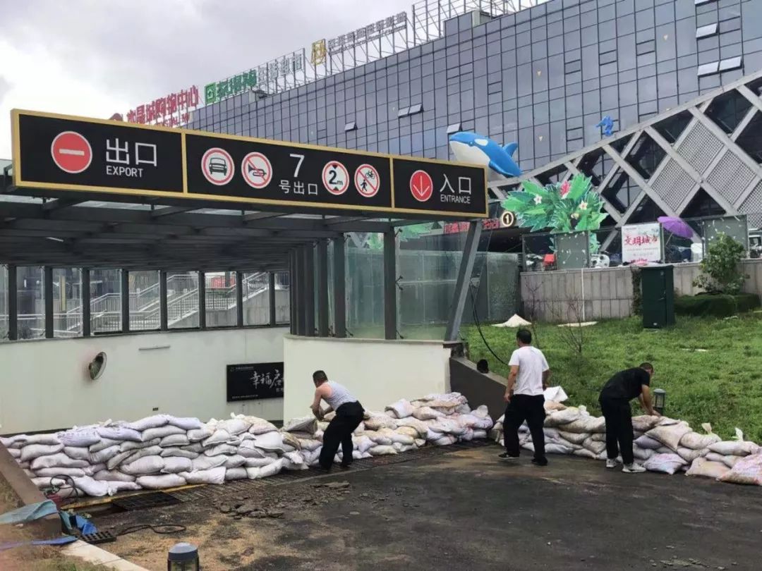 台风过后,骤雨停歇。水晶产业公司场务部、设备部、安保部员工又积极行动起来,检修电梯、维修通讯、清理沙袋、巡查场馆,为了给商家良好的经营环境而奔走忙碌。据悉,此次共出动水泵4台、烘干机2台,班组5人,从11日下午开始,对场馆开始逐个电梯排查、清理底坑,昼夜抢修。