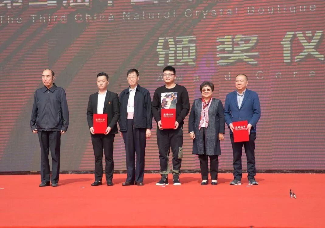 开幕式上公布了第三届中国天然水晶精品“晶华奖”大赛评选结果并进行了颁奖,金奖获得者东海县苏晶轩文化传播有限公司苏明贤、好运水晶王万军、明博网络科技有限公司仲海兵上台领奖。