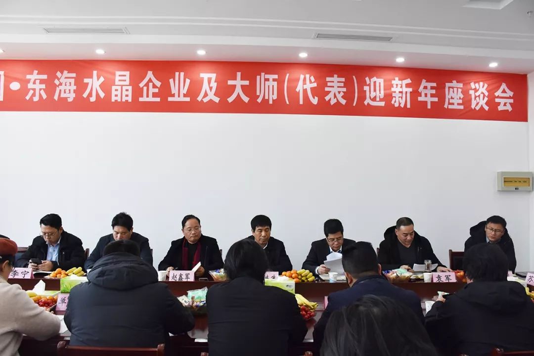 2019年12月31日下午,由中宝协水晶分会和东海县水晶宝石行业协会主办的中国东海水晶企业及大师(代表)迎新年座谈会,在东海县水晶宝石行业协会召开,会议由东海县人大常委会党组副书记、副主任张继生主持,40名来自相关部门、单位、企业和大师代表参加座谈会。