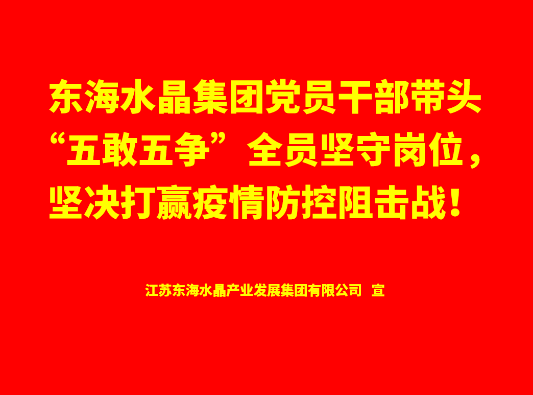新年伊始,新型冠状病毒感染的肺炎疫情牵动人心,全国各地疫情防控形势严峻。关键时刻,总有这样一群身影令人难忘,更令人动容。“我是党员我先上,不计报酬、义不容辞”、“我是有着10年党龄的党员,我要冲在第一线”......连日来,东海水晶集团党员干部主动请缨,放弃假期休息、走出休假状态,全员在岗在位,为打赢疫情防控这场硬仗汇聚起强大合力。
