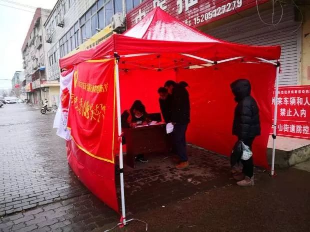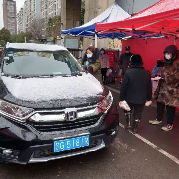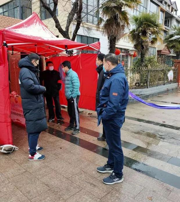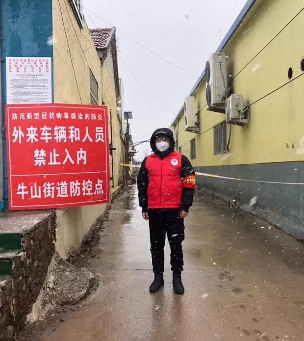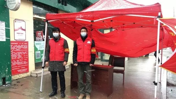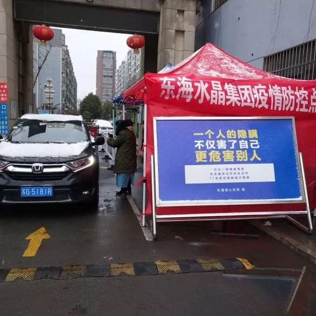 今年以来最强寒潮今天袭来,今天的东海飘着大雪,水晶集团深入小区卡口执勤的工作人员坚守岗位,为抗击疫情努力着。
