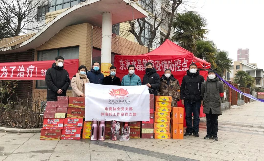 今天下午,仲海兵工作室党支部、电商协会党支部向水晶集团奋战在一线的工作人员送去温暖和关怀,并捐赠了16箱方便面、16箱八宝粥、16箱火腿肠、4个暖水壶等生活物资。仲海兵表示:“现在是疫情防控的关键时期,坚守在一线的工作人员,非常辛苦也非常危险,向你们致敬!希望尽点绵薄之力,齐心协力打赢这场疫情防控阻击战。”水晶集团领导班子成员以及抗疫一线的同志接受慰问品并向捐赠组织表示感谢。