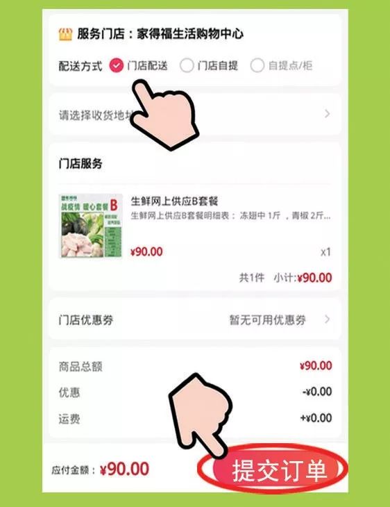 4、当天17:00前订单,最晚次日配送,当天17:00后订单,最晚隔天配送,配送至小区门口,进行自取;