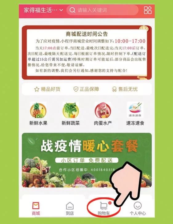 为给大家提供放心、安全健康的配送服务,家得福超市每日对配送员消毒、要求配送员必须配戴口罩,每日更换及清洗配送服装,配送车进行早晚消毒,配送员送完货后必须进行消毒,并确保与顾客“无接触”配送。