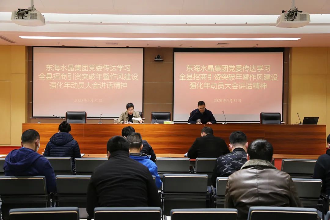 3月31日上午,水晶集团党委召开专题会议,传达学习全县“招商引资突破年、作风建设强化年”大会精神,集团班子成员、各部门负责人参加会议。董事长李明同志主持会议。