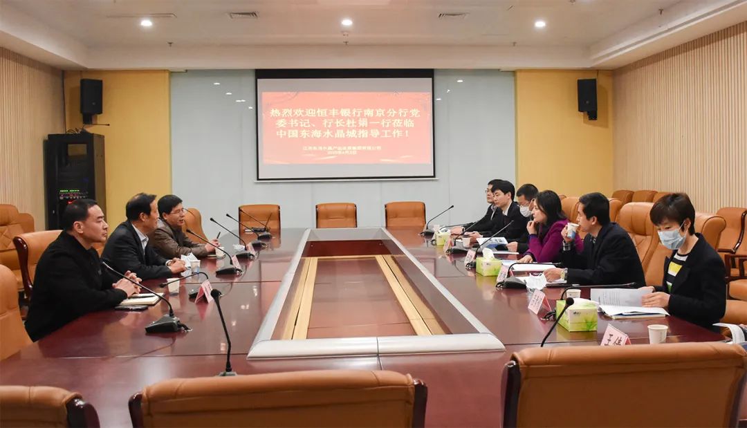 4月3日上午,恒丰银行南京分行党委书记、行长杜娟一行来到东海水晶小镇参观考察。县领导张正干、水晶集团董事长李明、副总经理袁军陪同。