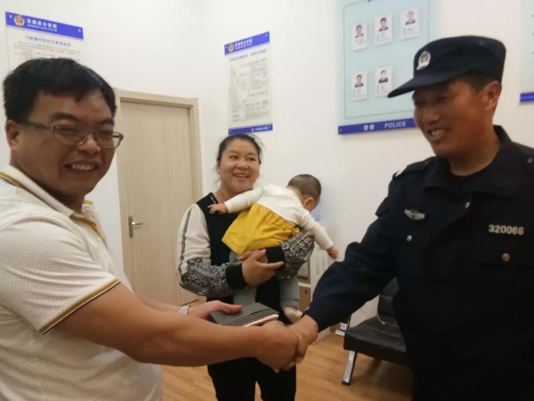 昨日,水晶城保安班长解宣新在执勤时捡到了一个钱包,内含现金四千多元、五张银行卡、一张身份证,以及佛挂件一个,因钱包内无失主的联系方式,解班长第一时间将钱包送至水晶城派出所,交由派出所联系失主,派出所当即采取措施,成功联系失主。最终来自山东枣庄的失主何先生赶到派出所,何先生紧紧握住解班长的手,连声表示感谢。