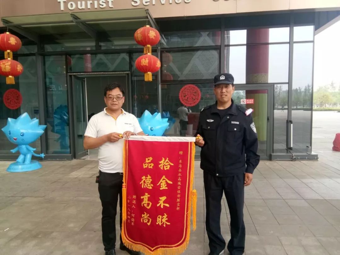 第二天,一面锦旗送到了解班长面前,何先生说:“水晶城能有这么好的员工,是商户们的福气!”解班长说到:“这是我们应该做的。”