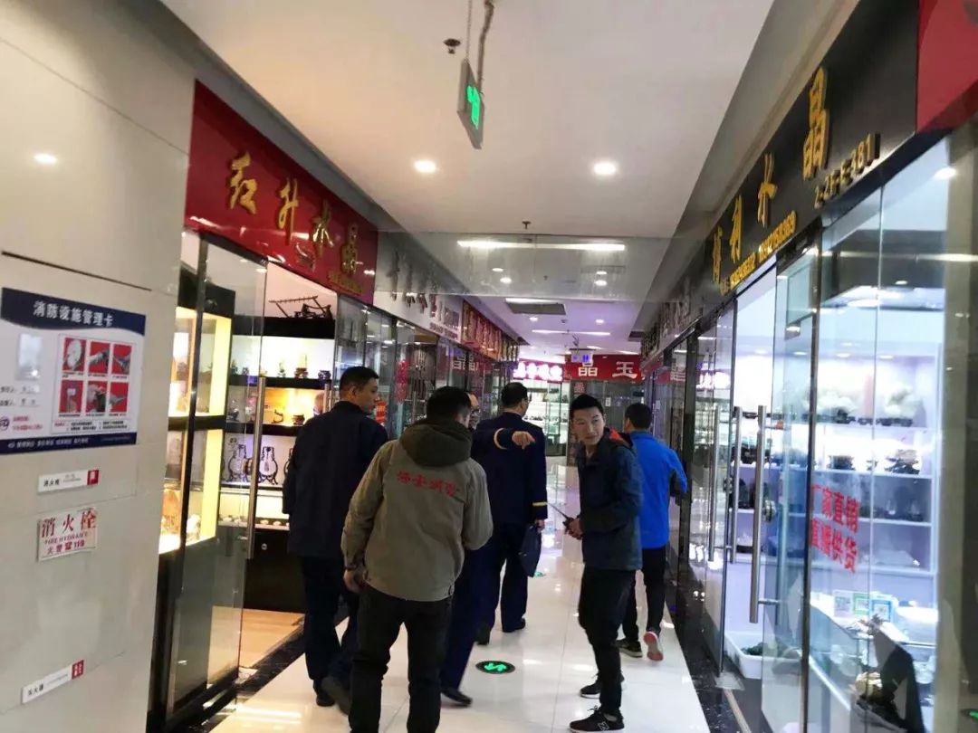 检查组先后来到消防控制室,一号馆、二号馆的水晶商铺、简餐以及疏散通道进行检查,发现通道有易燃物、商铺门口存在店招和广告牌电线不符合要求以及商铺有电瓶车充电等行为提出整改要求。