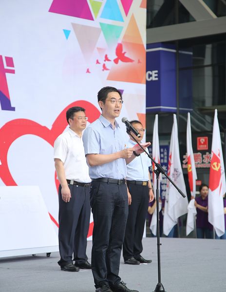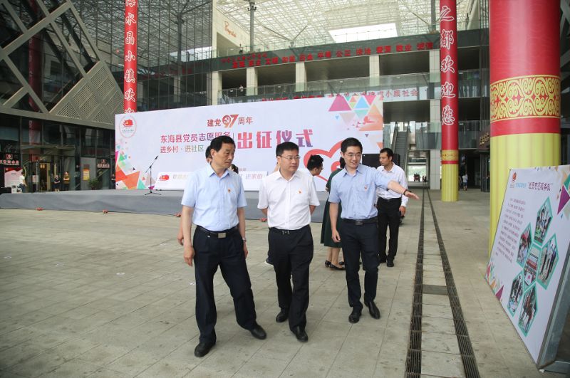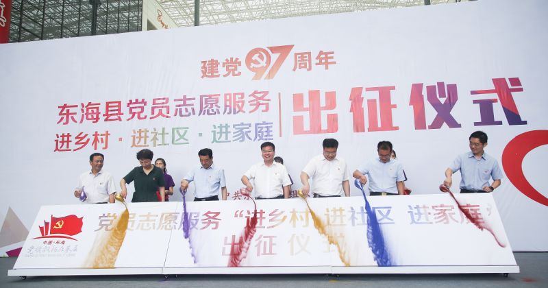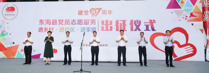 7月1日上午,东海县在水晶城南广场举办“党旗飘扬在基层—党员志愿服务‘进乡村、进社区、进家庭’”出征仪式,吹响全县首个“党员志愿服务日”集结号,县、乡、村各级党组织联动,同步开展党员志愿服务活动。