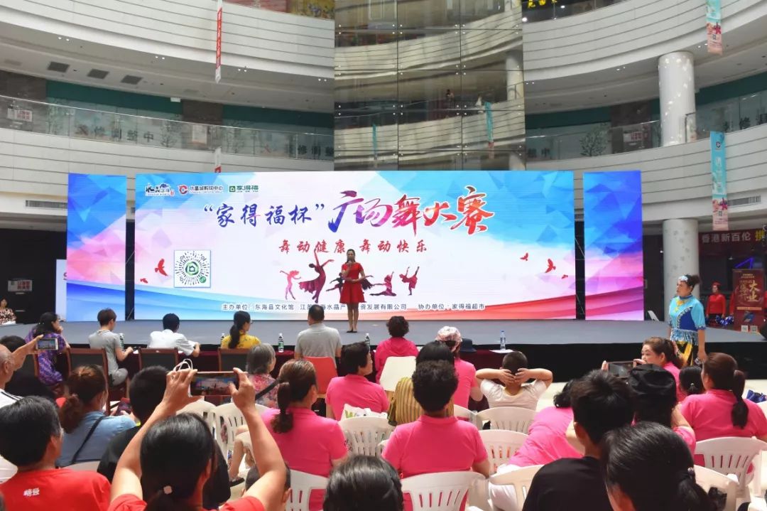 7月28日下午,“家得福杯”广场舞大赛在水晶城购物中心举办,本次大赛由东海县文化馆、江苏东海水晶产业投资发展有限公司主办,家得福超市协办。共有来自全县30支代表队伍参赛,同台竞技。现场吸引了近千名观众参与互动、观看。