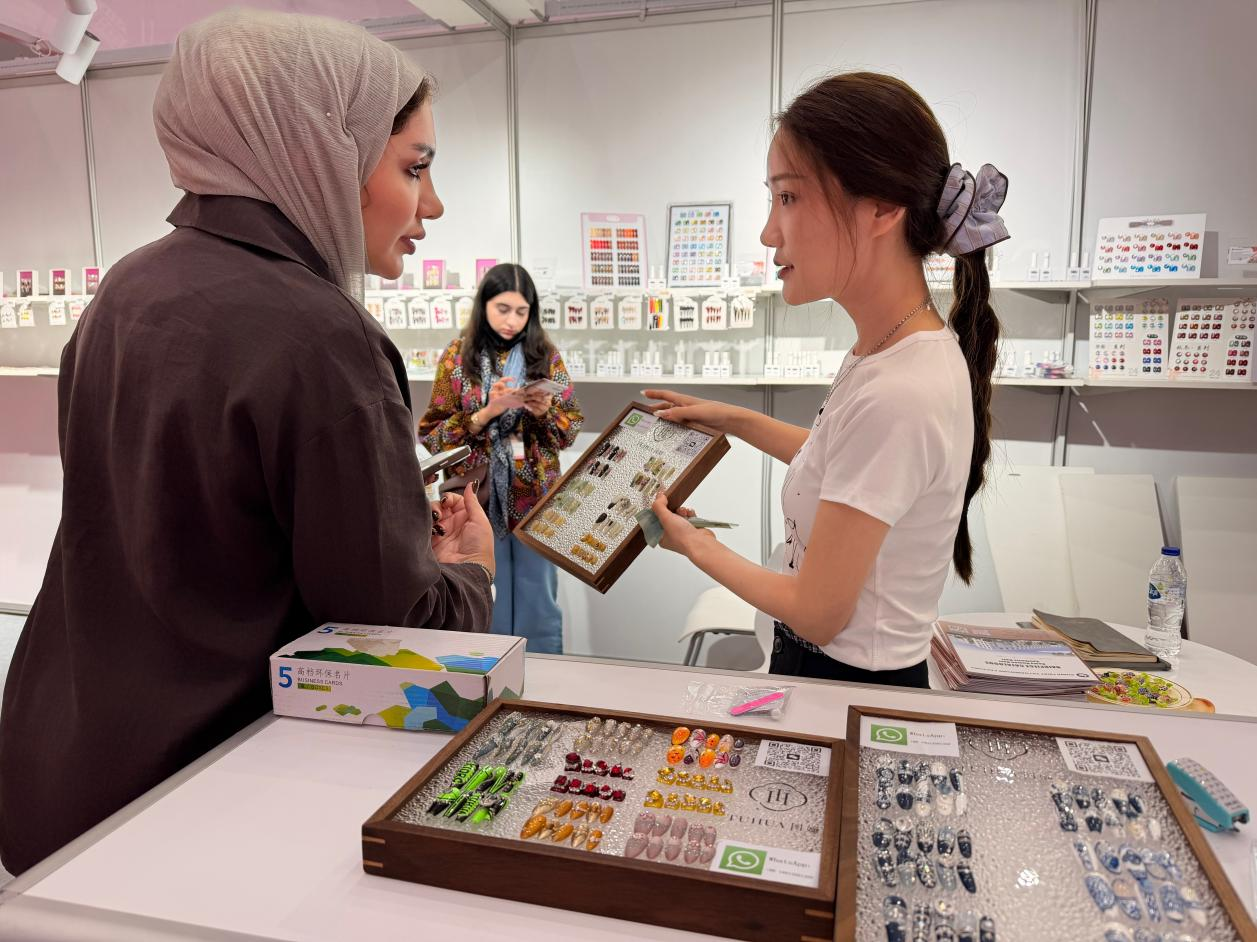 专业品质 赢得国际认可 展会期间,来自沙特阿拉伯、阿联酋、卡塔尔等国家的美容行业专业人士纷纷驻足,详细了解东海穿戴甲的产能、生产工艺和产业链体系。