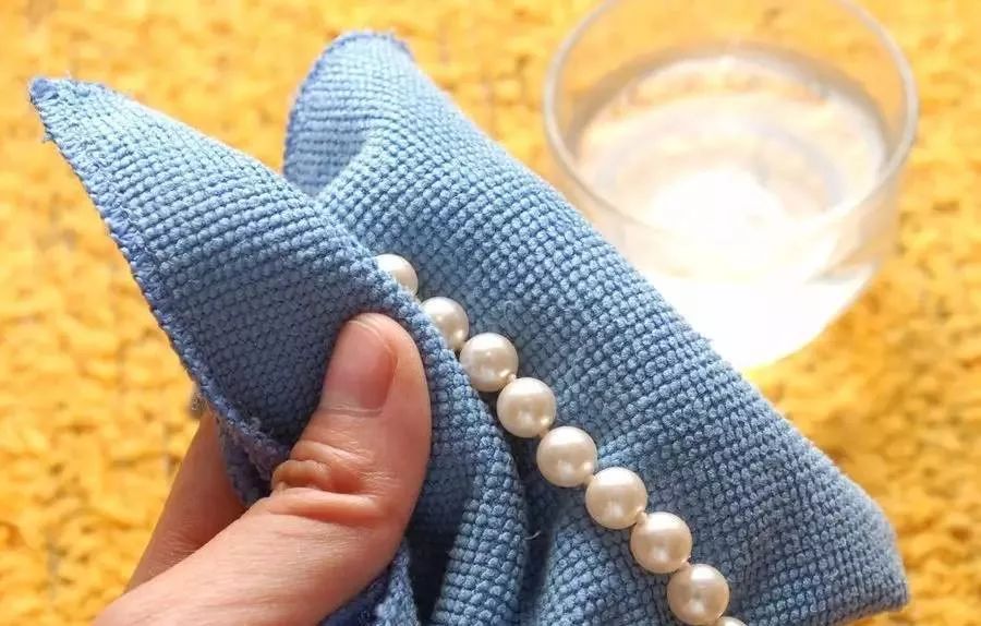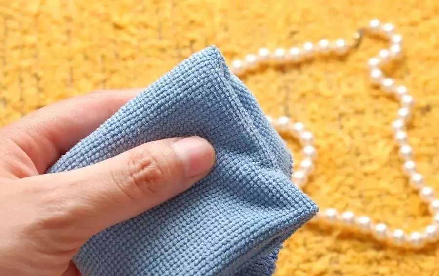 先用软布将珍珠上的灰尘擦掉,家里如果有人戴眼镜,可以用眼镜布哦~