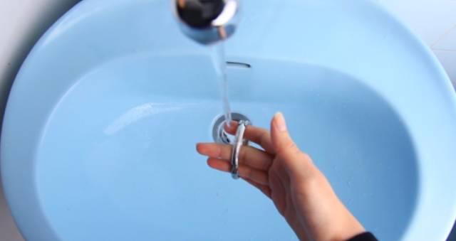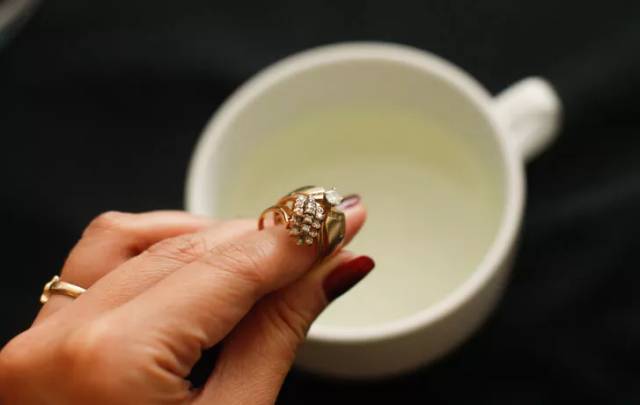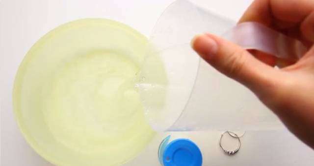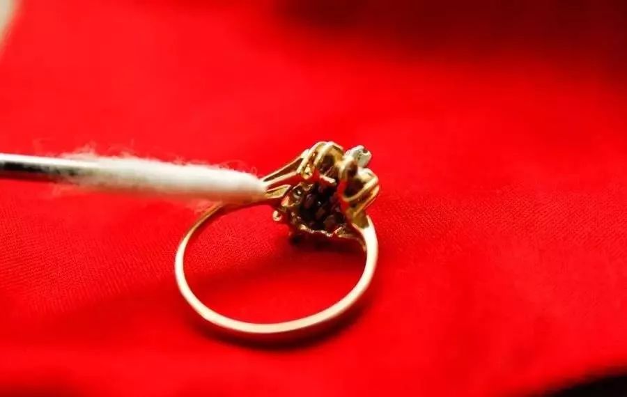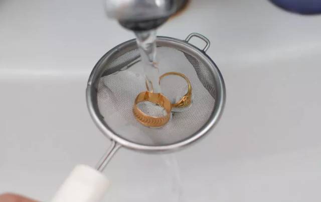 有些首饰尤其是戒指上会镶有饰品,如果是用胶粘上去的话就不能和水接触了,要不然胶水会化开,可以用下面的方法