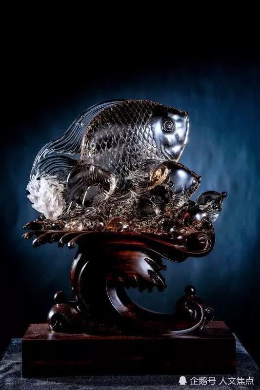 本件作品由海派玉雕大师沈德盛与中国青年玉石雕艺术家陈旭辉这对师徒历时6月精心创作而成,选材以优质天然白水晶,澄澈如水,近看无暇,唯有创作出精品佳作方不负自然馈赠;工艺美术源于生活,匠人师法自然,二人选用自然中鱼群游觅这一自然现象为主题,运用内雕、阳雕、阴阳雕结合、浮雕与凹雕结合等诸多技艺集中展现了水晶材质的特征美,表达了二人对自然与人的思考,将对水晶与自然的尊重、对工艺的热爱、对生活与未来的憧憬付诸其中,完成这一创作。作品完美呈现水晶通透澄澈的特点,可360度观赏,不同角度都有不同景观,实为难得。