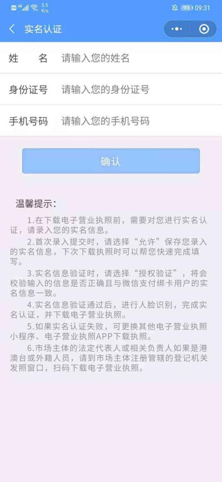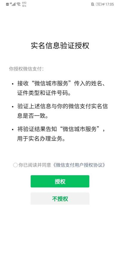 4.输入实名信息,包括姓名、身份证号和手机号,必须与微信支付绑卡用户的信息实名信息保持一致,点击“授权”,进行人脸识别,完成实名认证。