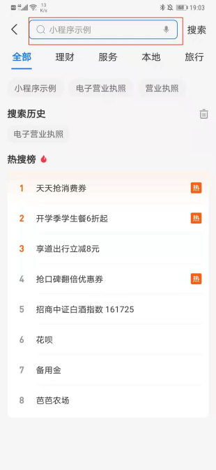 1.支付宝中搜索“电子营业执照”支付宝小程序安装步骤: