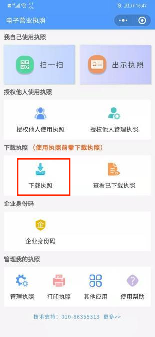 3.点击“电子营业执照”即可安装电子营业执照微信小程序。