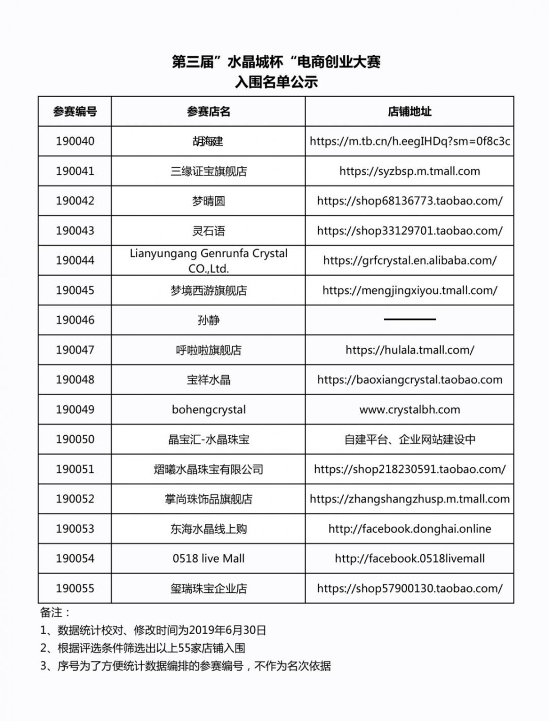 大赛自启动以来,受到了企业家、创业者以及水晶行业类伙伴的广泛关注。截至6月30日,大赛共吸引1821家单位及给个人报名参赛,经过一周严格细致的评审,最终遴选出55家优秀参赛选手入围初赛。在此,感谢所有的参赛者这一路对“水晶城杯”连云港水晶电商创业大赛的支持,后续连云港水晶电商创业大赛也将陆续联系作者,进行大赛下半程的晶彩开始。