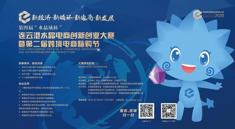 为汇聚水晶产业经济发展新动能,激发大众创业、万众创新活力,助推电商产业扶贫攻坚,提升水晶产业影响力,第四届“水晶城杯”连云港水晶电商创新创业大赛于8月6日隆重启动,本次大赛由江苏省电商协会、连云港市人才办指导;东海县人才办、东海县商务局、东海县总工会主办;江苏东海水晶产业发展集团有限公司、东海县科教创业园区管委会承办、东海县电商协会、东海县电商协会水晶电商分会、东海县电商协会农产品电商分会、东海县电商协会快递电商分会、东海县电商协会网红直播电商分会、东海县电商协会跨境电商分会协办。