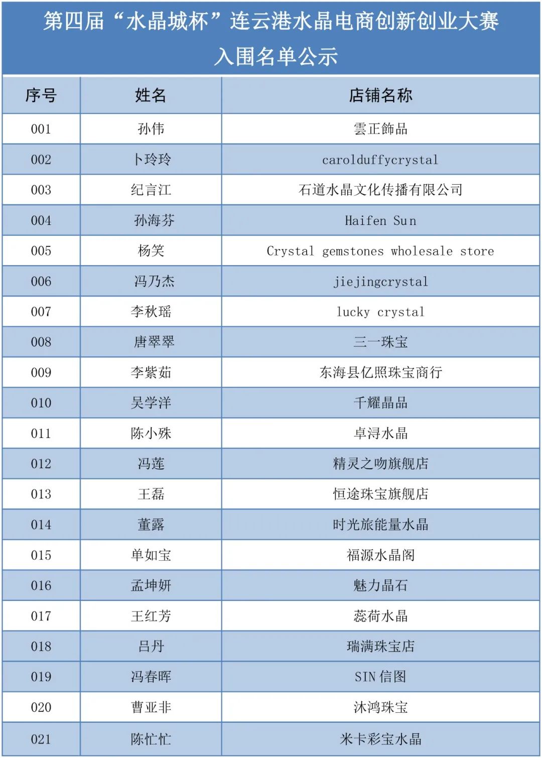 大赛自启动以来,受到了企业家、创业者以及水晶行业类伙伴的广泛关注。截至8月26日,大赛共吸引1365家单位及个人报名参赛,经过三日严格细致的评审,最终遴选出43家优秀参赛选手入围初赛。在此,感谢所有的参赛者这一路对“水晶城杯”连云港水晶电商创新创业大赛的支持,后续连云港水晶电商创业大赛也将陆续联系作者,进行大赛下半程的精彩内容。
