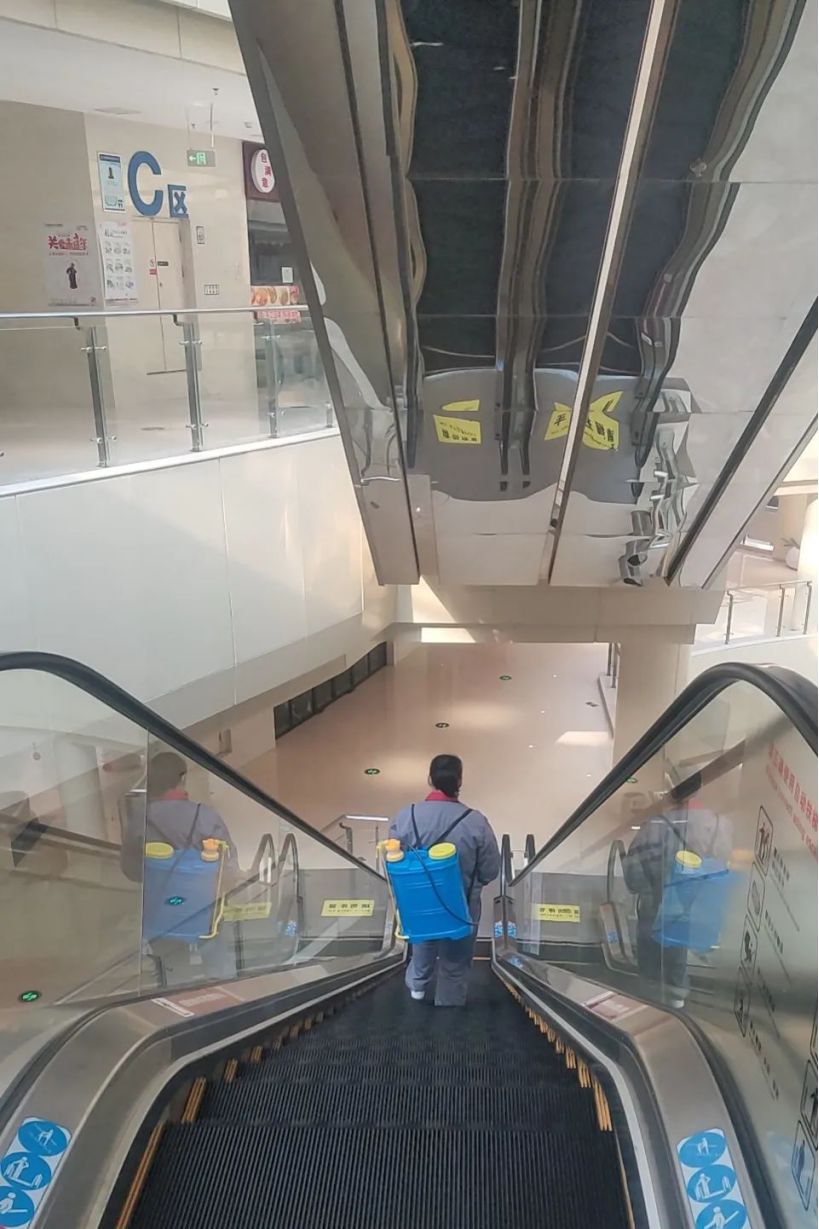 为了保证商户和顾客的健康,小镇对场馆外围、场馆内公共区域、临时隔离区等进行每天2次消毒,对卫生间、母婴室2小时消毒1次,对观光电梯、手扶电梯每小时消毒1次,对进入场馆等候区重点区域每小时消毒2次。