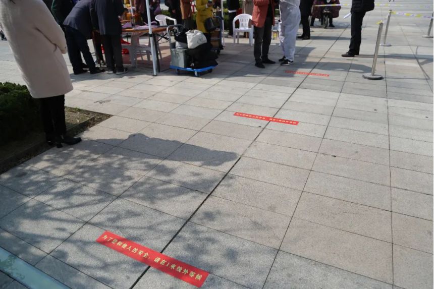 为营造足够的安全距离,特设置一米安全线,避免人员聚集,预防交叉感染。
