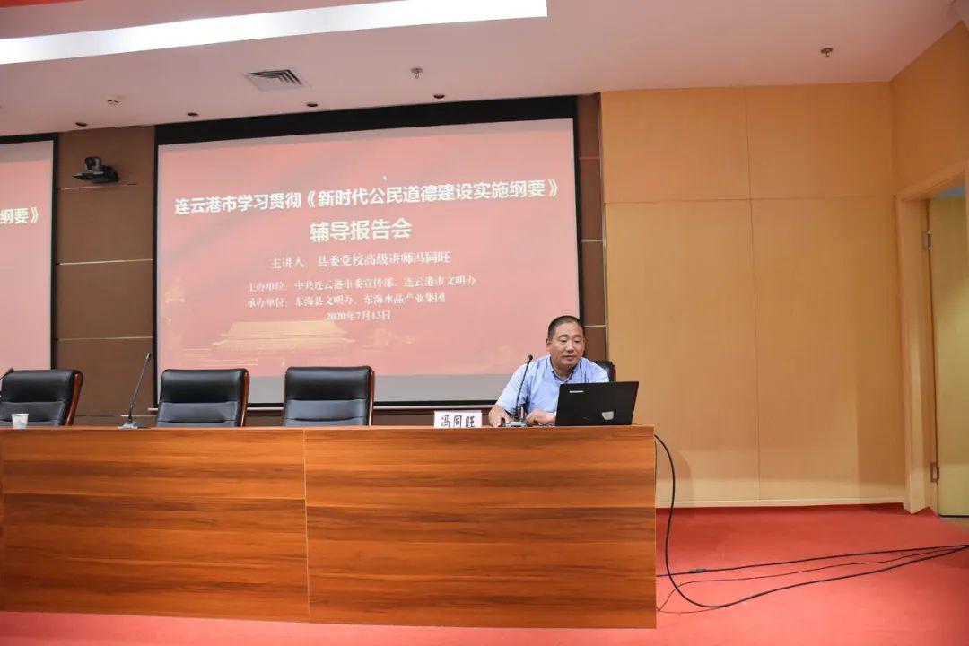 冯同旺老师从背景意义、特点、着力点、工作思考等四个方面讲解了《新时代公民道德建设实施纲要》,并进行详细分析和梳理。他说,东海县正处在创建全国文明城市关键时期,水晶集团作为县属国企,更应该发挥好榜样作用,大力引导广大干部职工和商户群众积极践行公民道德建设,做新时代道德公民,为全国文明城市创建工作贡献力量。