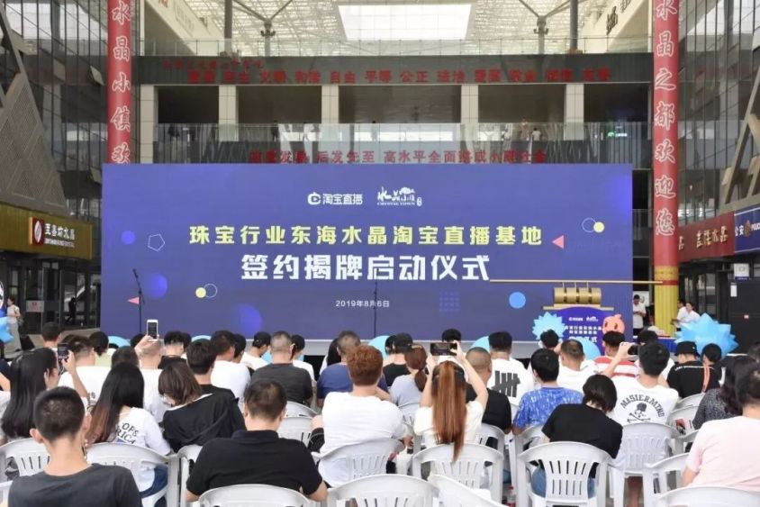 8月6日下午,珠宝行业东海水晶淘宝直播基地签约揭牌启动仪式在中国东海水晶城举行。