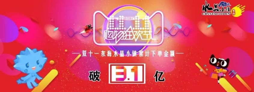 11月11日,2019年东海水晶产业双十一销售额达3.1亿。