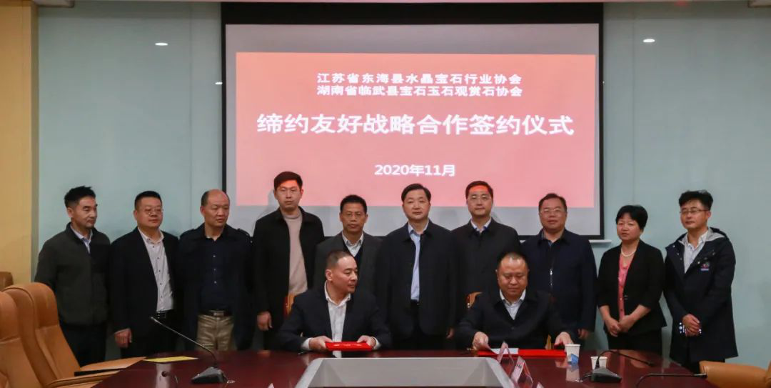 参观考察结束后,江苏省东海县水晶宝石行业协会与湖南省临武县宝玉石观赏石协会签约了战略合作协议。