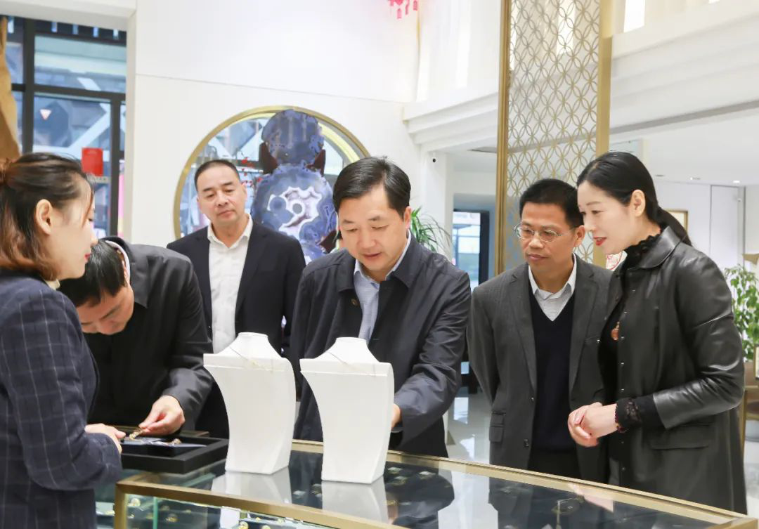 11月10日,湖南省郴州市委常委、常务副市长蒋峰一行来东海水晶小镇参观考察,水晶集团总经理丁训涛、副总经理袁军等陪同参观。