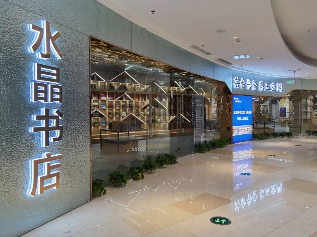 芸台书舍是一家全国性连锁书店,2020年6月,正式签约入驻水晶城购物中心,目前已经试营业,经营面积2346㎡,整体设计突出水晶主题,以阅读服务为基础,嵌入实体载体的书店。融合书店、小剧场、琴棋书画、四点半大课堂、咖啡简餐、文创集市、演出、出版、文化活动、益智培训等十种业态,为东海人民提供一种全新的文化娱乐体验和服务空间。
